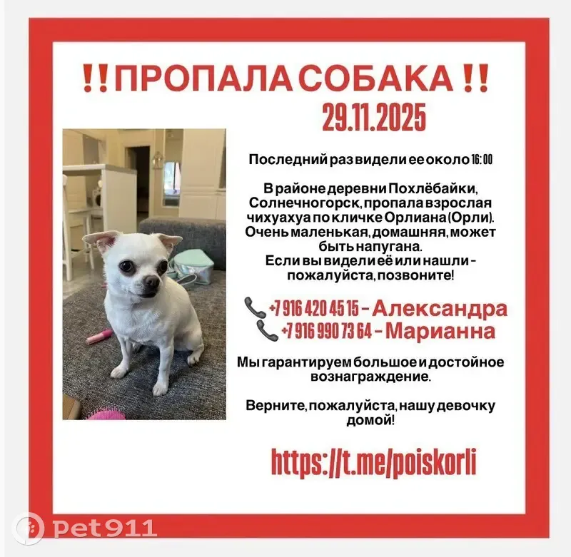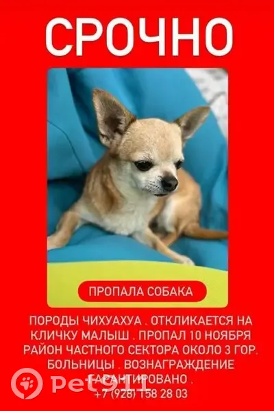 Следует помнить, что Чихуахуа — это активные и любопытные собаки, поэтому они могут забрести далеко от дома в поисках приключений. Постарайтесь действовать быстро, так как время имеет значение для возвращения пропавшего питомца.