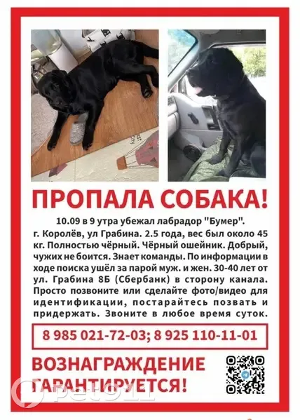 Пропавшие собаки породы Лабрадор