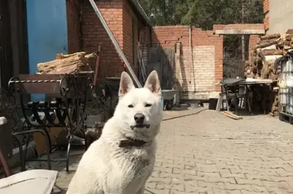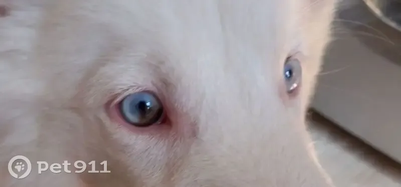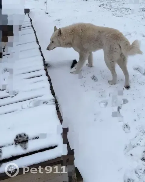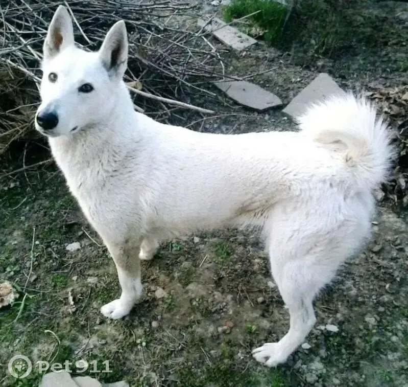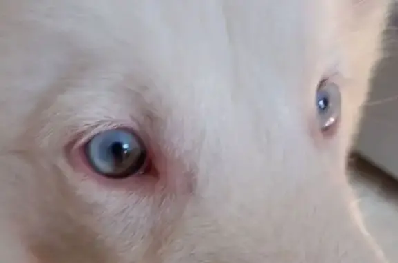 Белая лайка ,черные глаза, пятно желтое на сп...