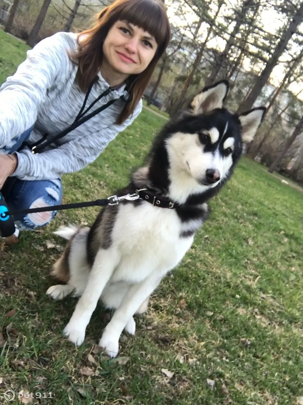 Хаски, черный ошейник, карие глаза, девочка....