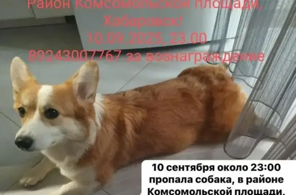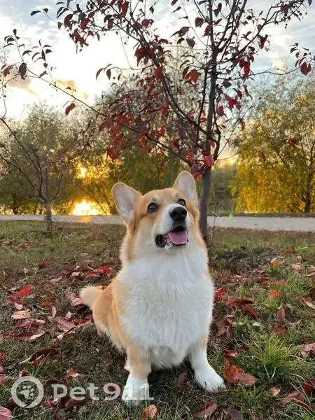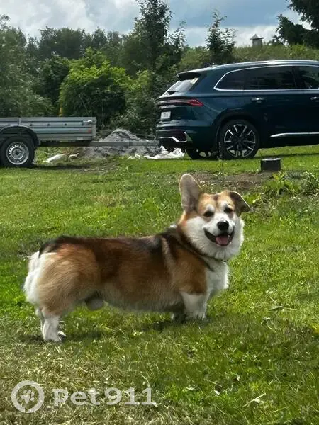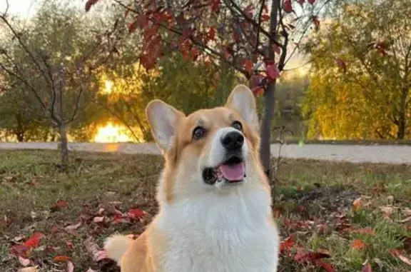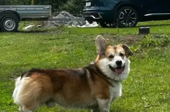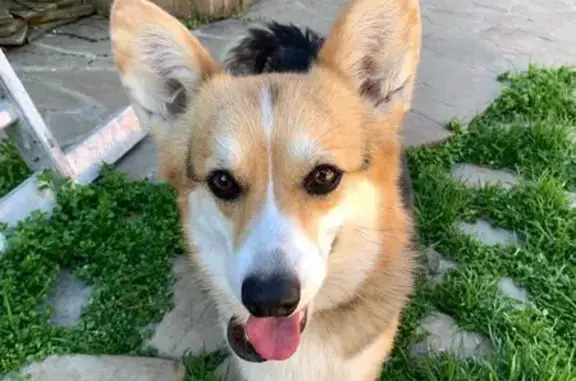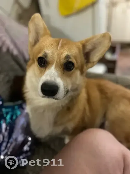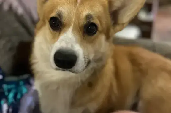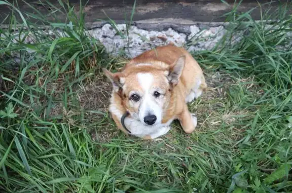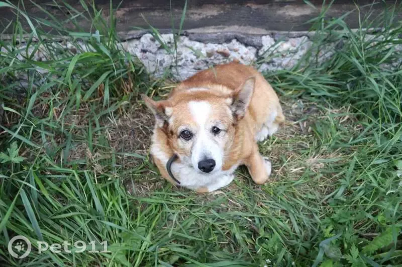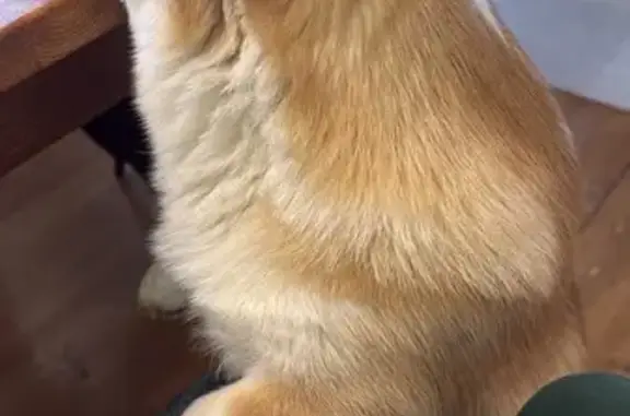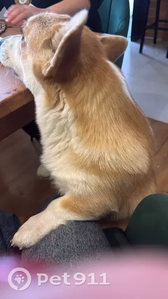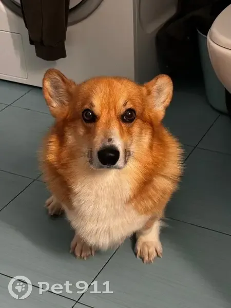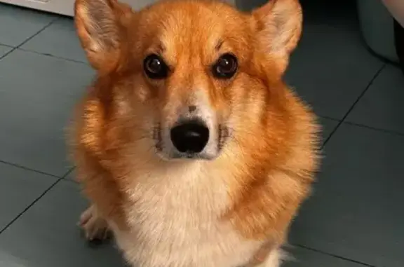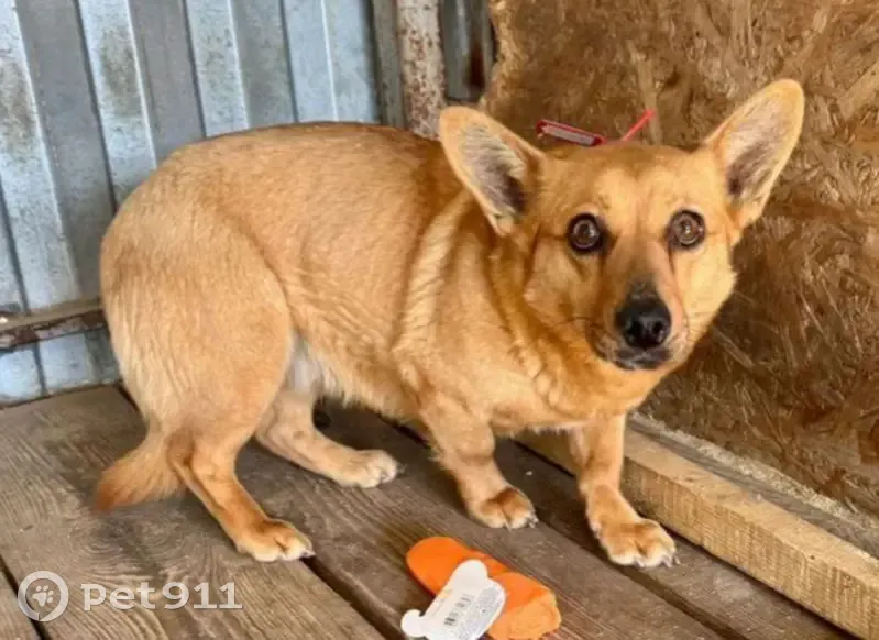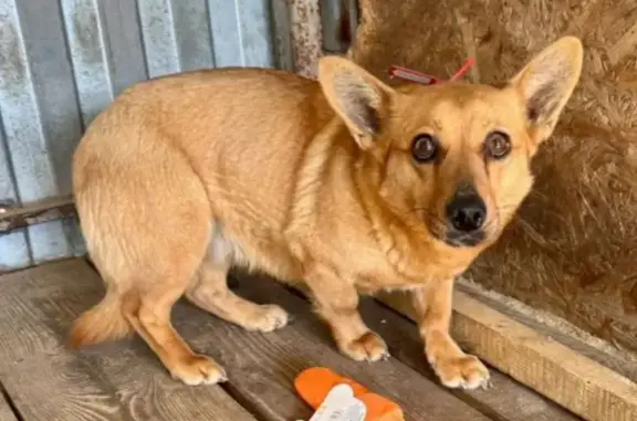 Рыжая собачка, похожа на корги, левый глаз тр...