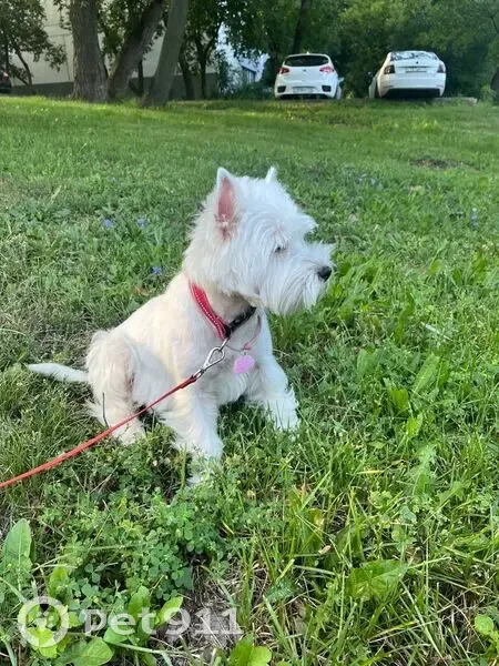 Вест-хайленд-терьер, белая девочка, с розовым...
