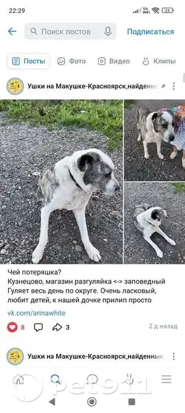 Пропавшие собаки (потеряшки) в посёлке городского типа Берёзовка