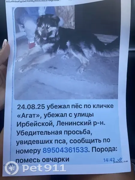 Убежала собака 17.08.2025г. Девочка. 6 месяце...