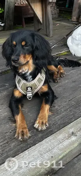 Молодой кобель. Помесь со спаниелем. Черно-ры...
