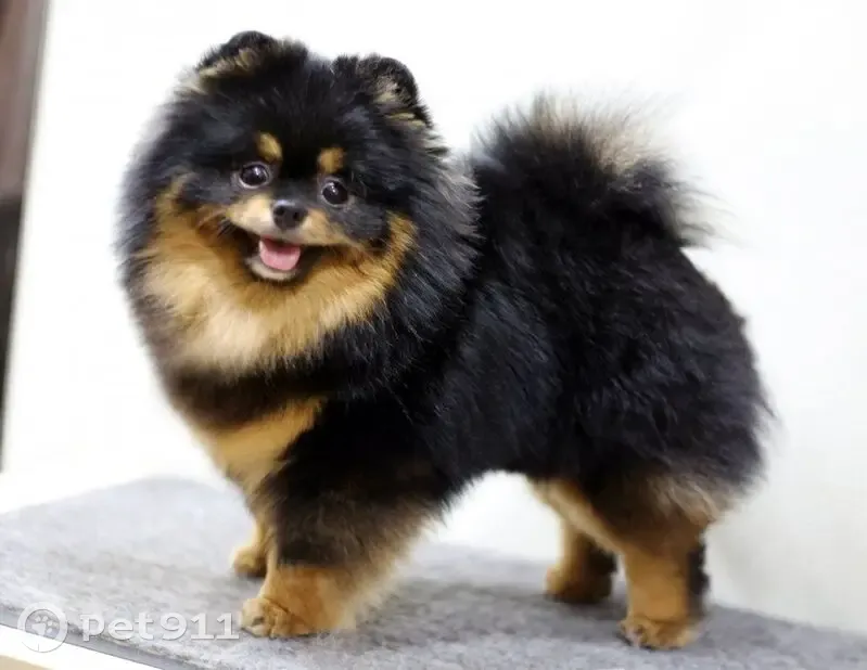 Черно подпалый очень маленький шпиц. Легко ко...