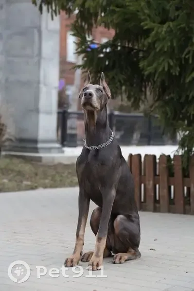 Овчарка с розоввм ошейником, под хвотиом серы...