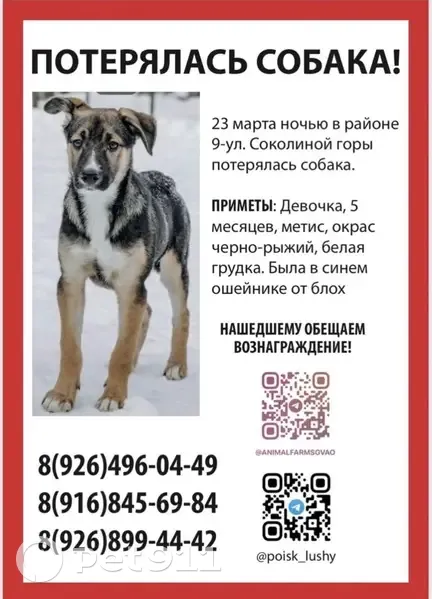 Собаки потеряшки, Москва, фото: Потеряшка собака, женский пол, проспект Будённого, 22 к2, Москва - щенок 5 месяцев