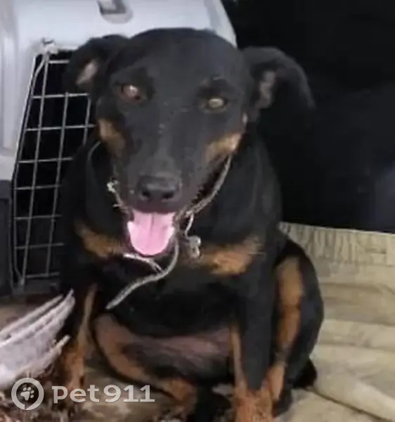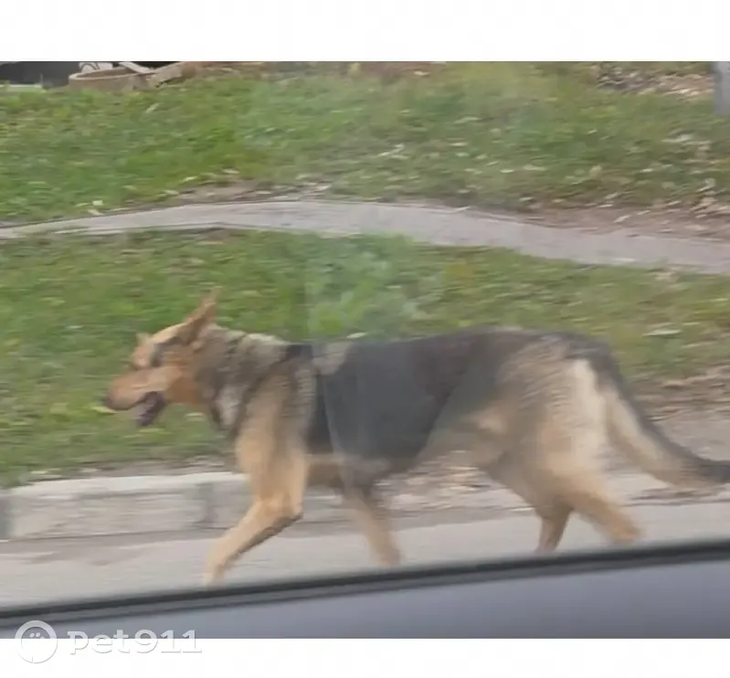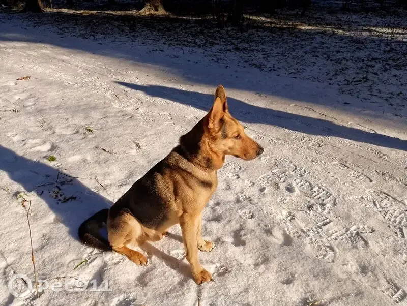 Чепрачный окрас, был в коричневом ошейнике. С...