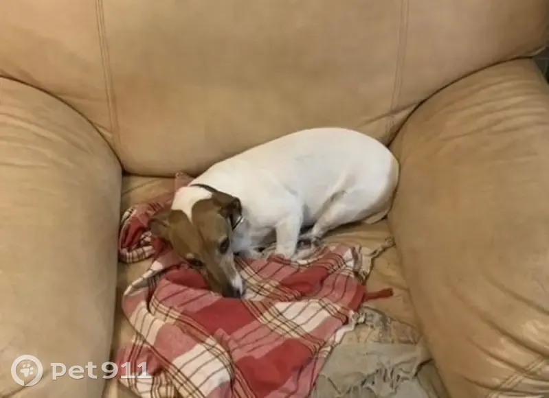 Порода Джек Рассел. Белая, ошейник, чип , ном...