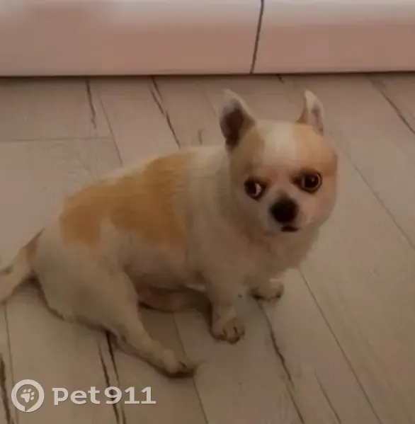 Белый Чихуахуа с коричневыми пятнами на шерст...