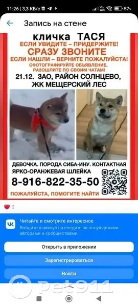 Пропала сиба-ину Тася, Боровск...