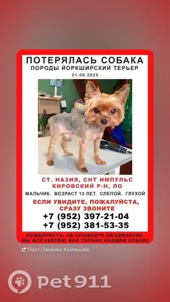ПРОПАЛА СОБАКА!!! ЛО Кировский р-н Посел...