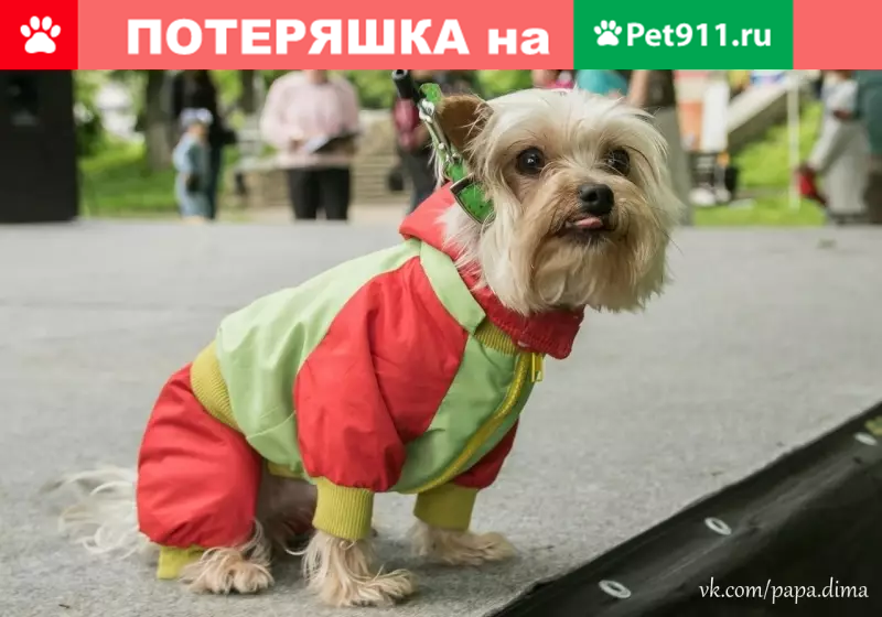 Пропала собака Мини-йорк мальчик, одет в свит...