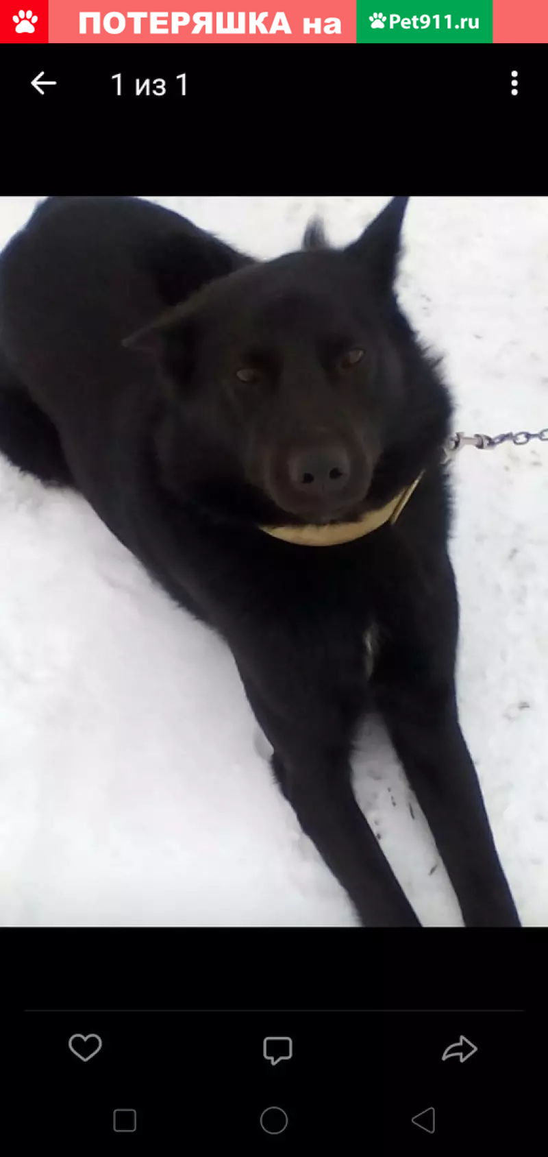 Пропала собака -черный кобель с ошейником и о...