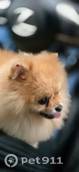 Собака шпиц, окрас рыжий, зовут Моня, в ушках...