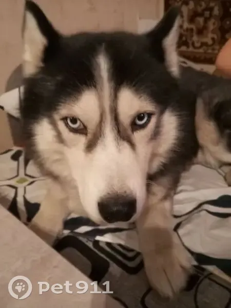 Был в сине-серой шлейке, есть клеймо на ухе....