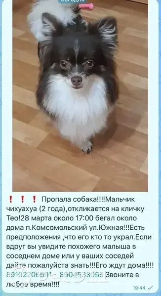 Собаки потеряшки, Комсомольский, фото: Потеряшка собака, Южная улица, 21, Комсомольский - черно-белый чихуахуа