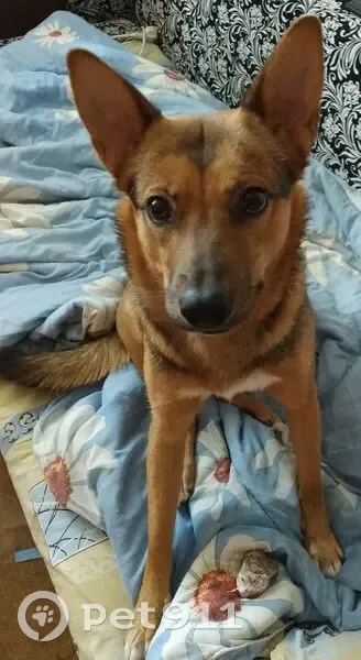 Окрас рыжий, белая грудка. Кличка Боня. Помес...