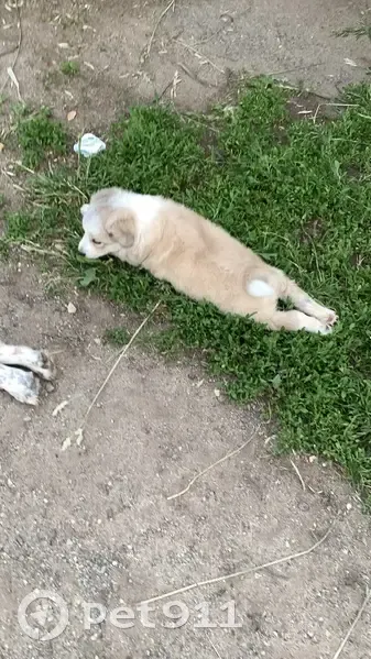 Щенок дворняжка,персикового цвета,на шее ошей...