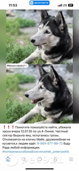 Помесь лайки и хаски, глаза карие, дружелюбен...