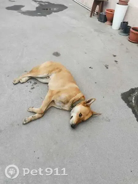 Высокий, рыжий, молодой с ошейником. Поврежде...