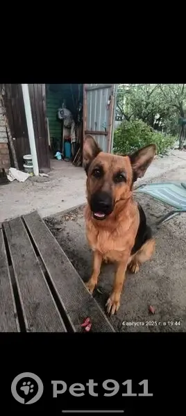 Немецкая овчарка, 4 года. В ухе клеймо, на ла...