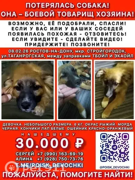 Собаки потеряшки, Ростов-на-Дону, фото: Потеряшка собака, Таганрогская улица, 134А, Ростов-на-Дону - рыжая с черной мордой и белыми лапами