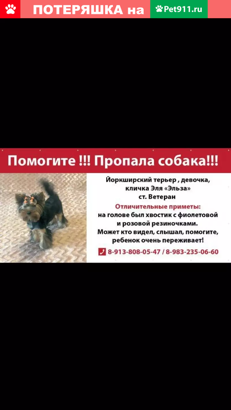 Пропала собака йоркширский терьер по кличке «...