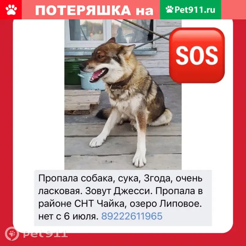 Пропала собака, сука, 3года, очень ласковая....