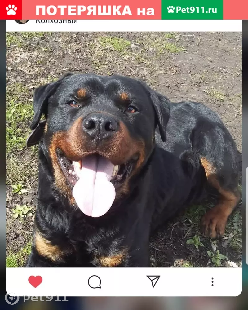 Ротвейлер, мальчик,зовут Арэс.вылез из ошейни...
