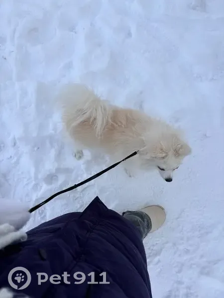 Собаки потеряшки, Челябинск, фото: Потеряшка собака, Бродокалмакский тракт, Челябинск - немецкий шпиц, белый с рыжетою
