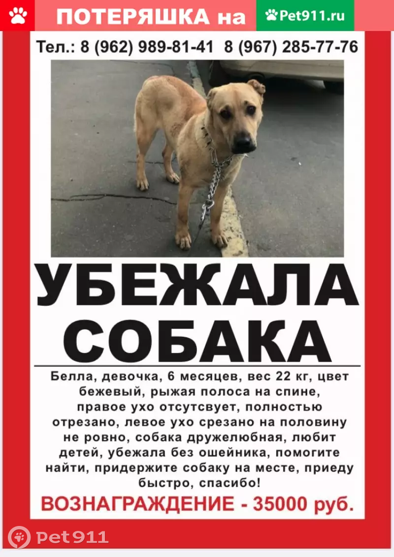 Пропала собака Белла в Москве,...