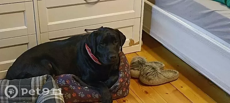 Порода лабрадор, чёрного окраса, откликается...