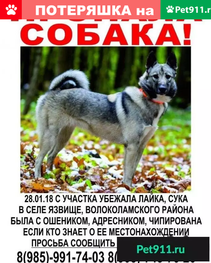 Пропала Лайка Алиса Село Язвище. Волоколамски...