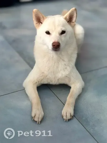Белая сиба-ину с оранжевым ошейником, убежала...
