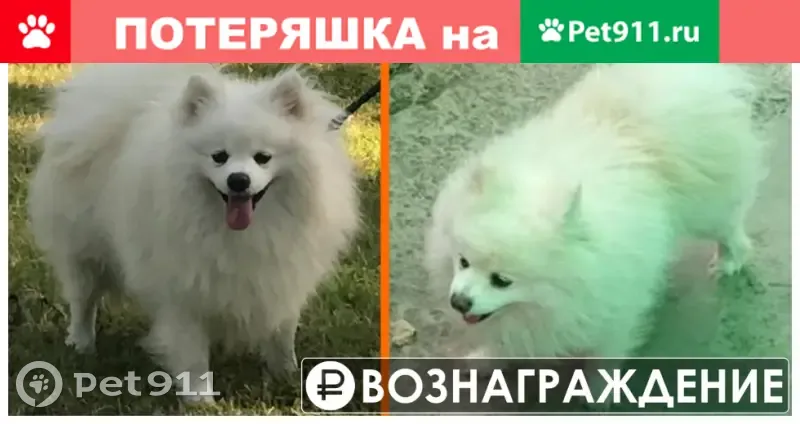 Пропал 4.07 шпиц белый крем, на шее черное пя...