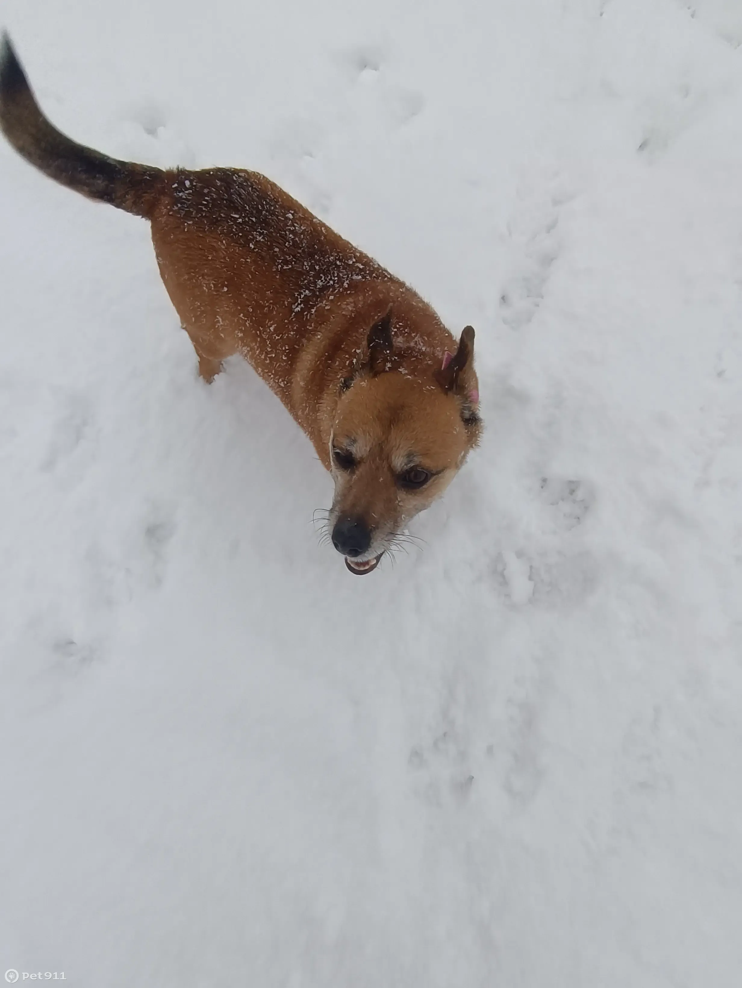 Собаки потеряшки, Санкт-Петербург, фото: Потеряшка собака, рыжая с черной маской, на пр. Науки, СПб