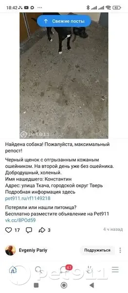 Питомец найден