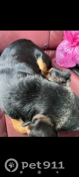 Чёрный с коричневым, хвост купированный, слеп...