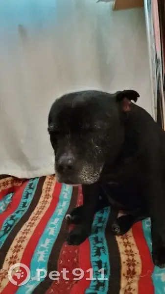 Черная с сединой на морде, на передней лапе н...