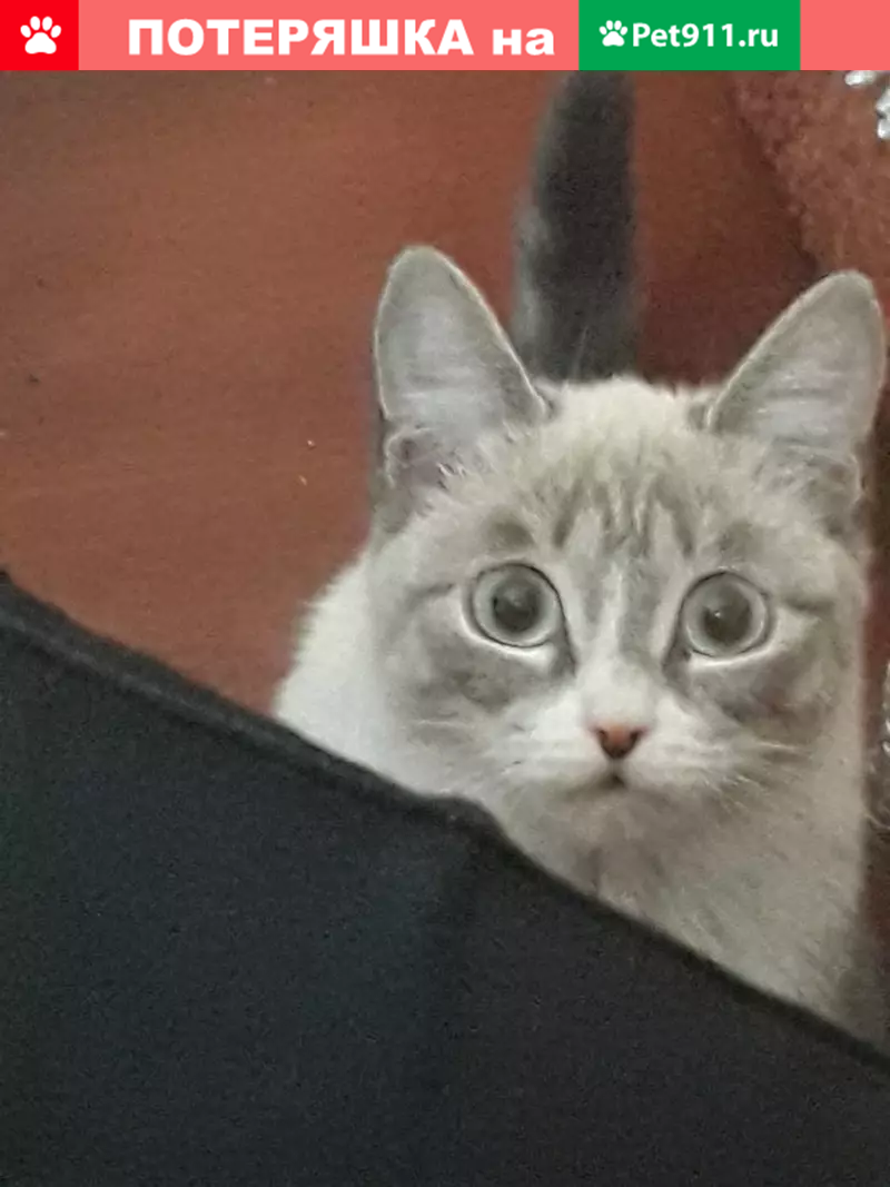 Здравствуйте, пропал наш 6месячный котёнок(девочка), с серо-голубыми глазками, среднего размера, любит лезть на плечи. Тех, кто видел, прошу позвонить на номер