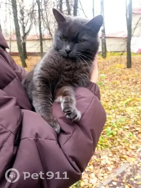 Серая шерсть, похожа на британку, зелёные глаза Крупная, упитанная, очень ласковая, шелковистая Моментально запрыгнула ко мне на колени, когда я присела её покормить, пытается залезть на руки Пол не проверяла