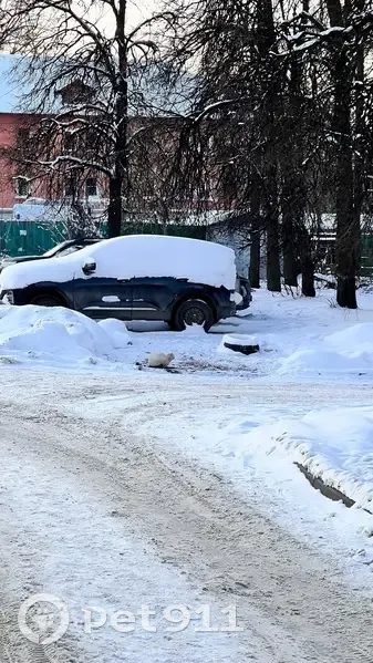 Светлый кот/кошка, с серым хвостом. Кричит громко от холода. Я проездом, взять некуда. Сидит на канализационном люке, на улице мороз. Может кто возьмёт к себе?