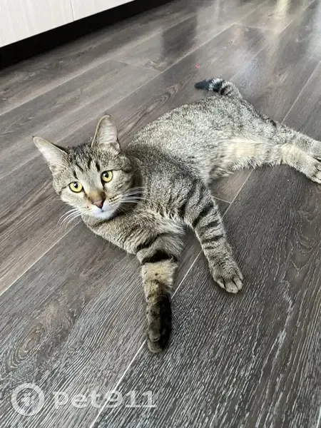 Серого с черными пятнышками и полосками окраса, на носу черная родинка, желтые глаза, очень ласковый и голодный. Нашла у своей квартиры в подъезде. Если у него есть хозяин, то прошу найдись. Кот очень ласковый и ждет своего хозяина