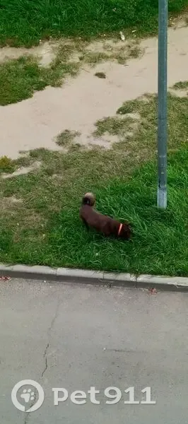 Коричневый окрас кобель небольшой, на шее оранжевый ошейник. Бегает весь день в районе улицы герцена. Мб хозяева просто одного отпустили гулять, а мб потерялся.