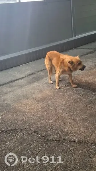 Рыжий пёс, дружелюбный, но пугливый. Ошейник чёрный, плотного качества, видимо убежал и потерялся. Агресси не проявляется, но немного боится. Голодный. Бежал за мопедом по дороге Альгешево от кафе Георгий. На остановке Березовой возле Магнита, отстал и стал бегать, явно ища хозяина.