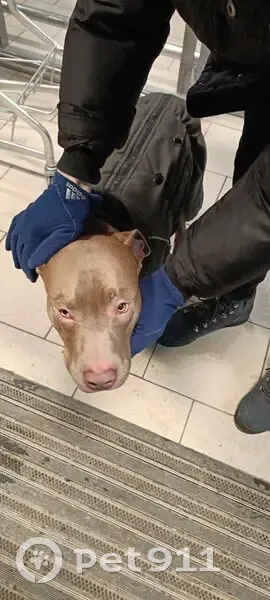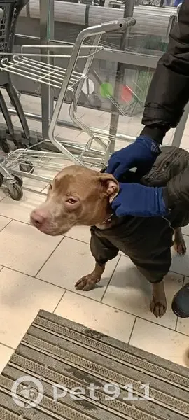 Собака коричневого цвета, похожа на породу питбуль, в комбинезоне и в ошейнике Зашла в автобус 101 на остановке Типсирма по Марпосадскому шоссе, хозяин видимо остался на этой же остановке Неравнодушные люди вышли с этой собакой на следующей остановке, придержали ее