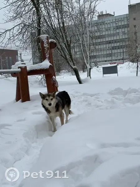 Песик бегал в парке, где игровая площадка. Заднюю лапку поранил, видимо. Хромал.