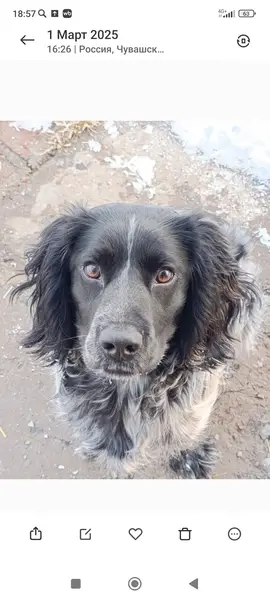 Нашлась собака породы - Русский Спаниель (мальчик). Собака домашняя, с ошейником и очень напугана. Бегала в районе Юго-Запада 21.02.2025 ( Социалистическая 7к2; стадион Волга, школа 7 ) с часу дня. Вечером временно забрал к себе на передержку. Максимальный репост!